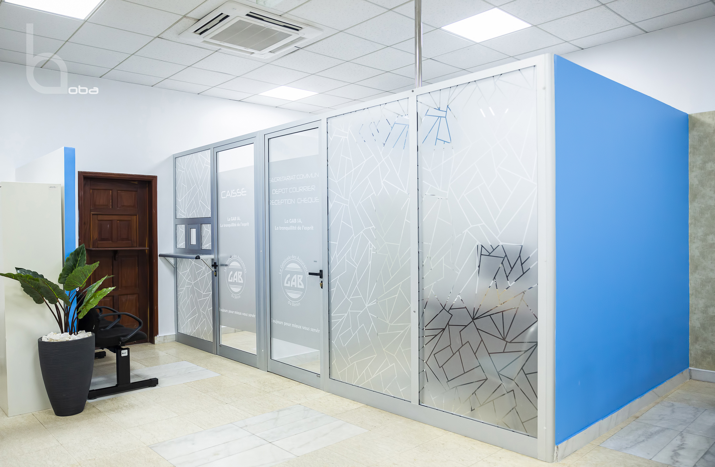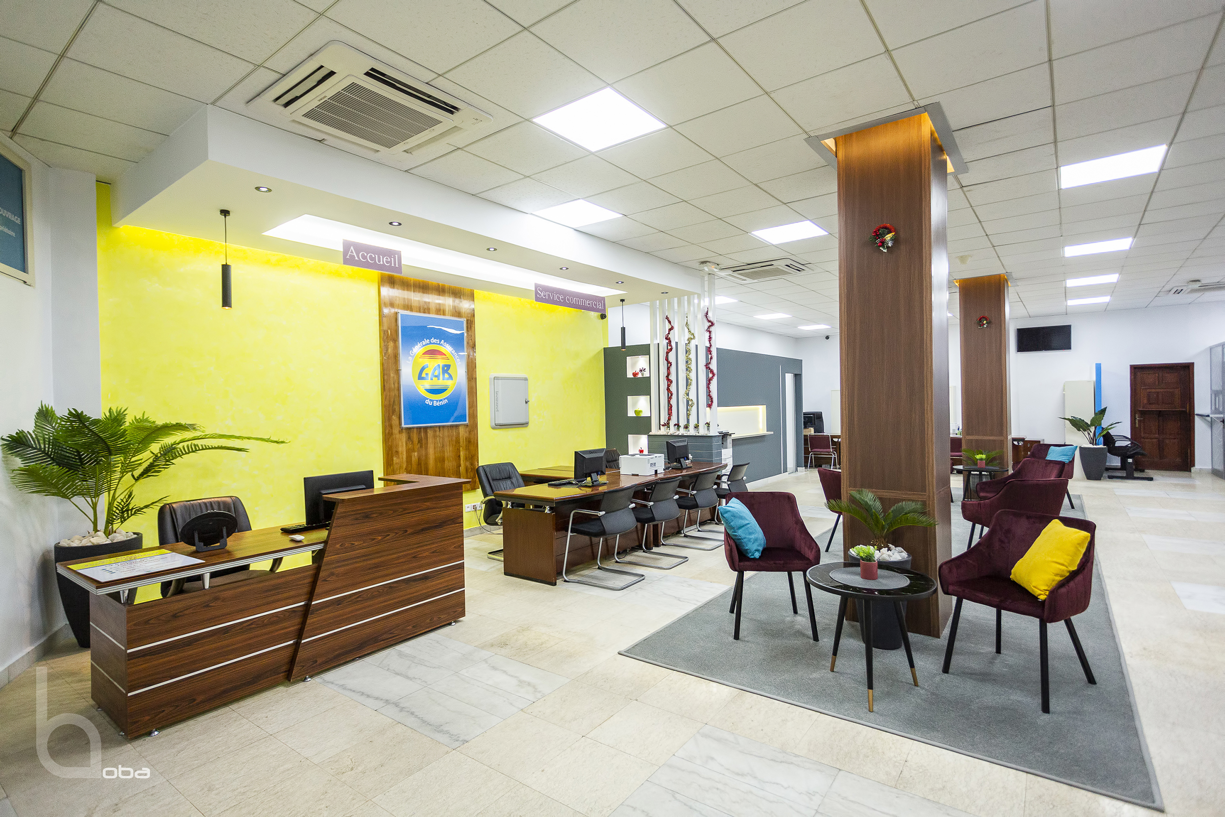 Projet de réaménagement intérieur d’un hall d’accueil et bureau PCA-Siège Social de la Générale des Assurances du Bénin (GAB SA).